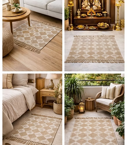 Designed to blend effortlessly into both modern and traditional spaces, this cotton dari is a timeless floor essential. Its handwoven texture and balanced pattern create visual depth without overpowering the space, making it perfect for everyday styling. Soft yet sturdy, it adds comfort underfoot while bringing a calm, earthy charm to your interiors.