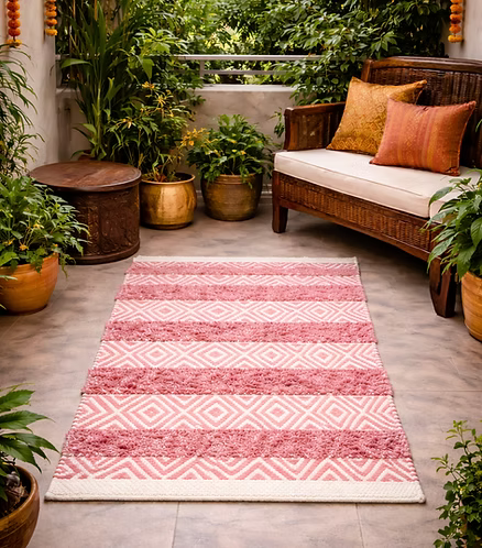 Add texture and charm to your space with this handcrafted Boho & Tuft Design Dari. Made from soft cotton, it features a beautiful mix of woven patterns and tufted detailing for a cozy, artisanal feel.