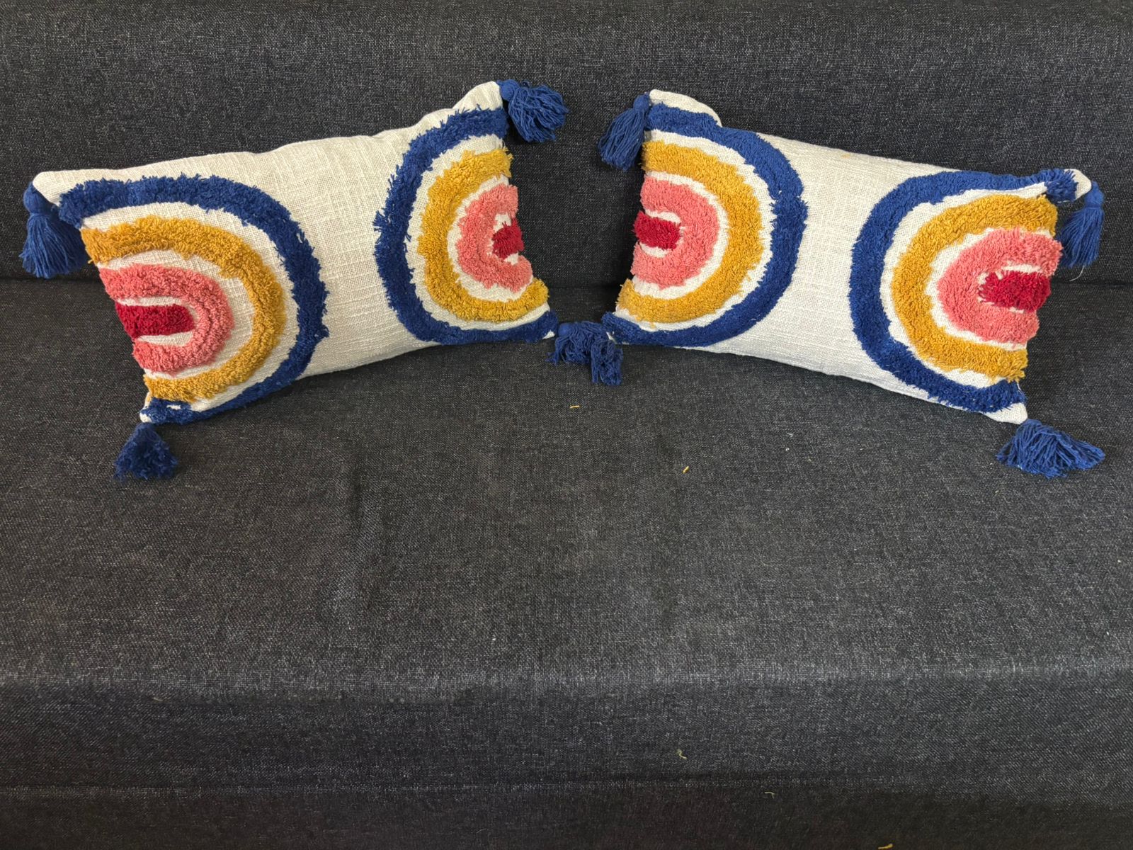 Brighten your space with Joyful Hues, a rainbow-inspired lumbar cover that adds a pop of color and cheer. Perfect for cozy corners, couches, or your favorite reading nook.