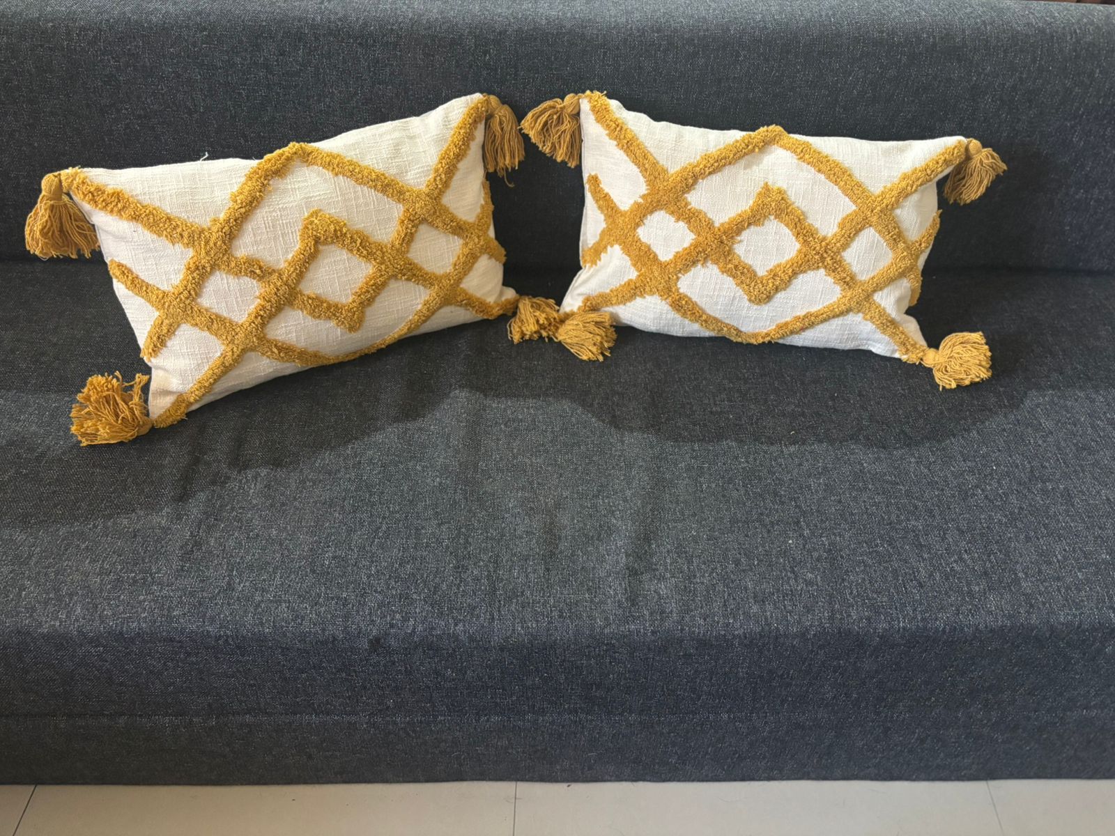 - Place on a sofa, armchair, or bed for instant texture