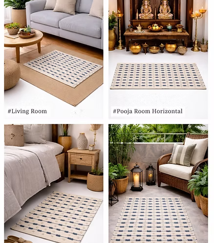 Add effortless warmth and character to your space with this handcrafted Boho Dari, designed to bring a relaxed, earthy charm to modern Indian homes. Featuring a textured weave and artisanal detailing, this dari blends traditional craftsmanship with contemporary boho aesthetics—perfect for creating cozy, inviting corners.